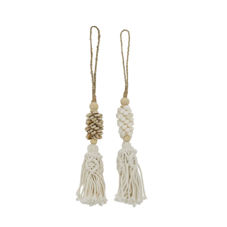 Dijk – wandhanger van macramékatoen met schelpjes – beige, wit