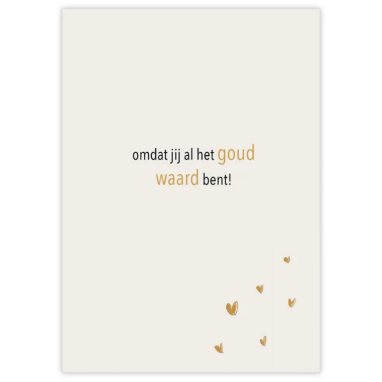 Hartgedichtje – wenskaart met envelop – Omdat jij al het goud waard bent! – crème