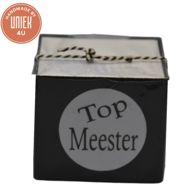 Uniek4U – Blauw/rood zeepblokje in bakje met bedankkaartje – Liefste juf
