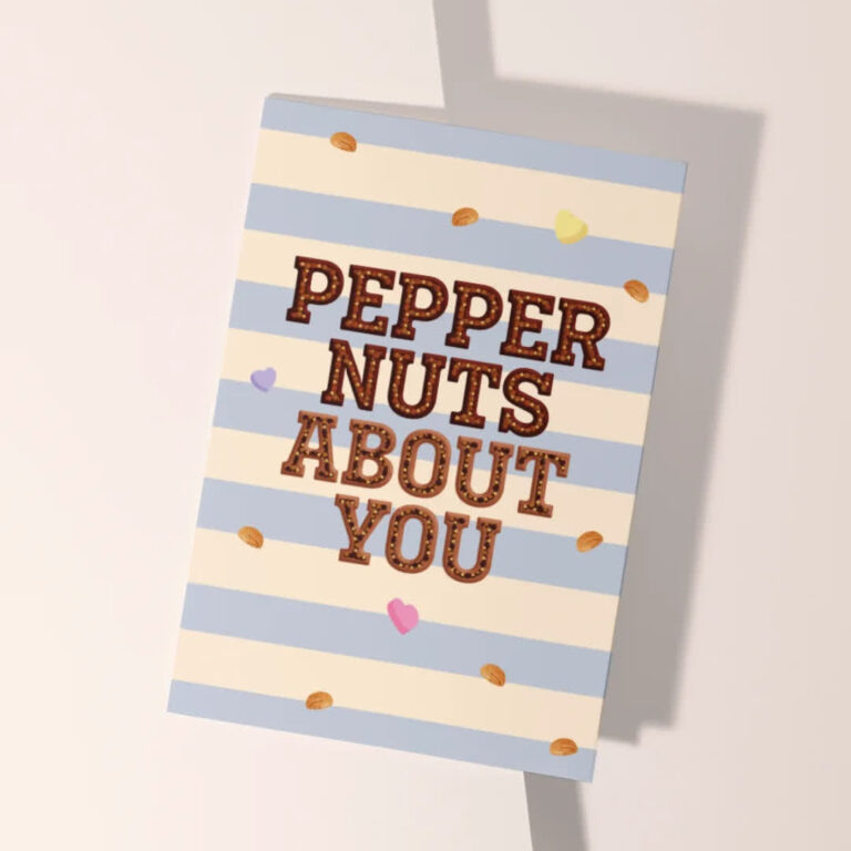 Heyday – Wenskaart – Pepper nuts about you – Wit, Bruin en Blauw
