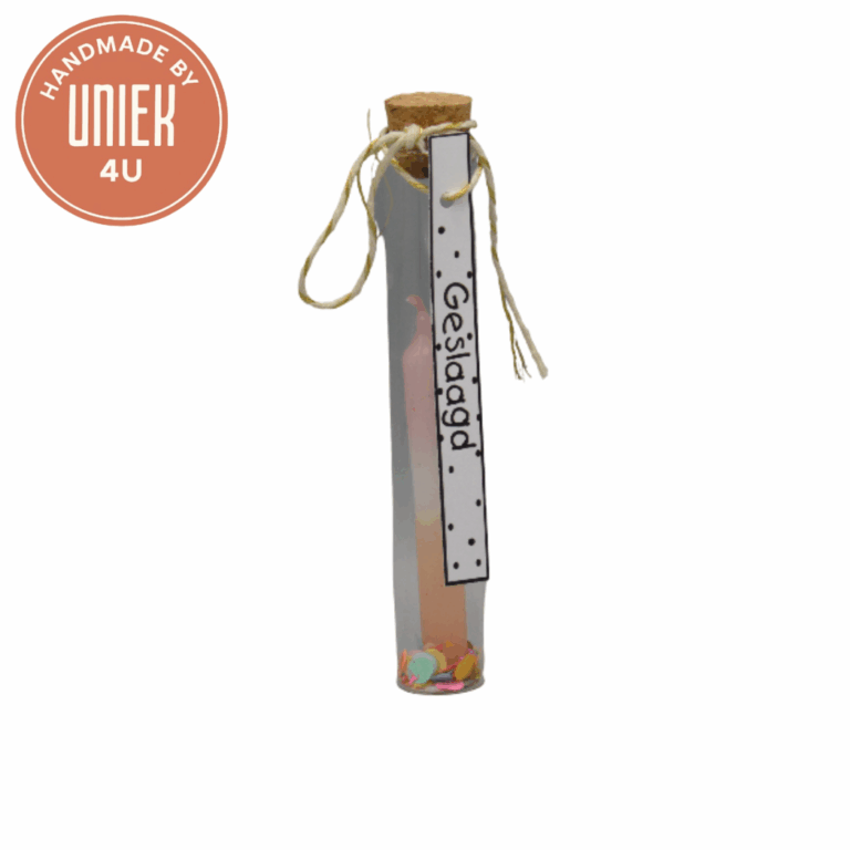 Uniek – kaars in glazen buisje – geslaagd – Roze, wit en oranje
