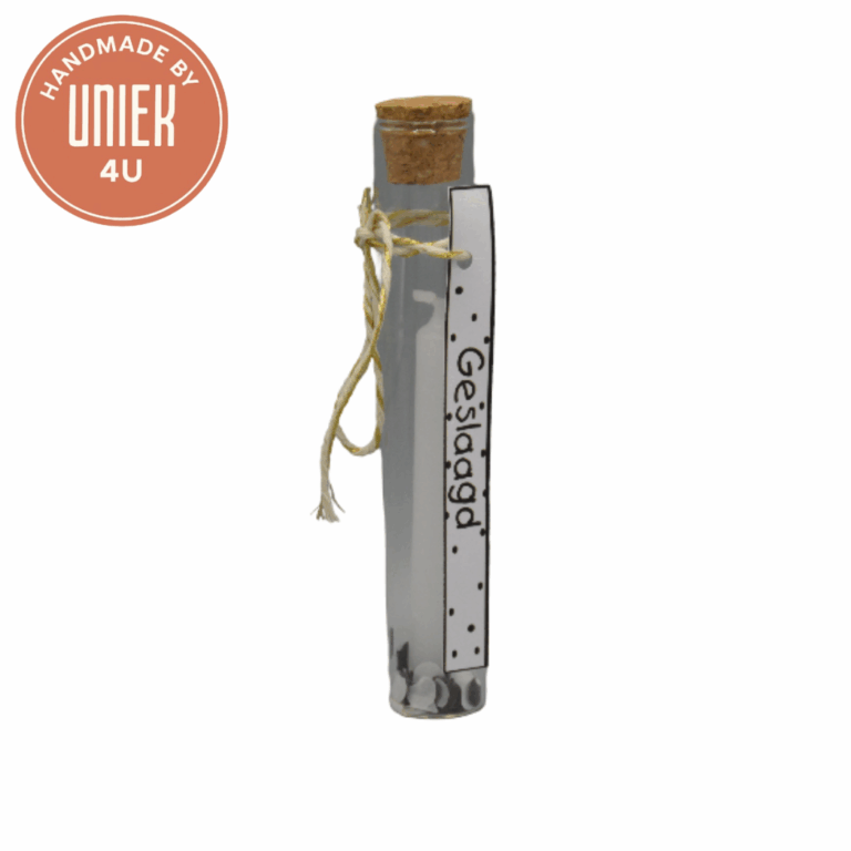 Uniek – kaars in glazen buisje – Geslaagd – wit