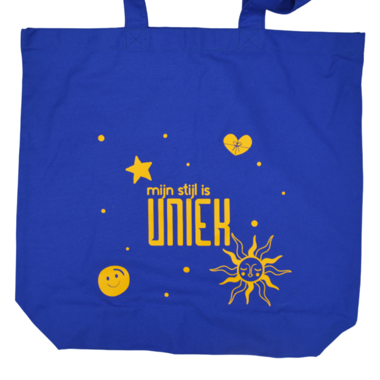 Uniek4U – tas met opdruk – Mijn stijl is Uniek – blauw