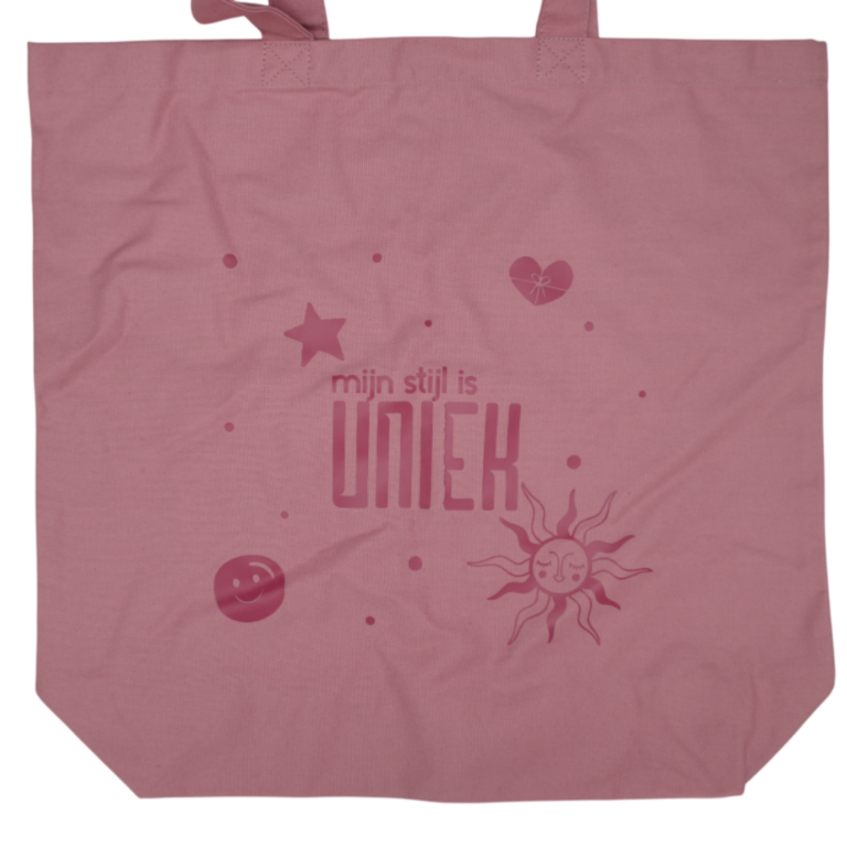 Uniek4U – tas met opdruk – Mijn stijl is Uniek – roze