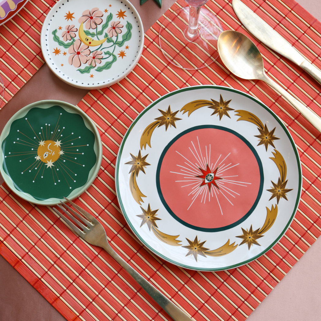 All the Luck in the World – groen schoteltje met zonmotief – groen, geel