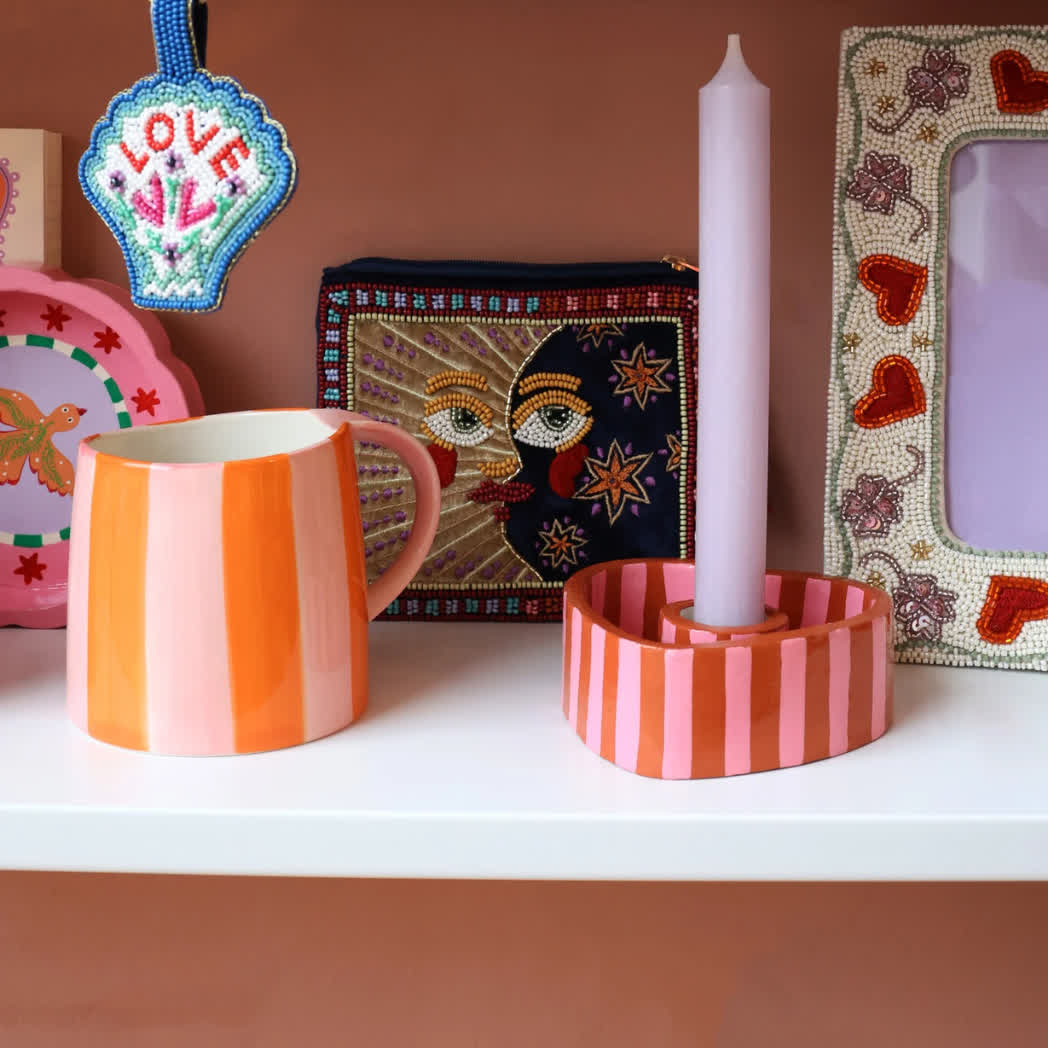 All the luck in the world – Kaarsenhouder Gestreept Hart