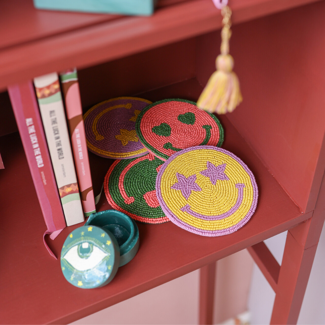 All the luck in the world – Onderzetter – Smiley – Roze/Groene ogen