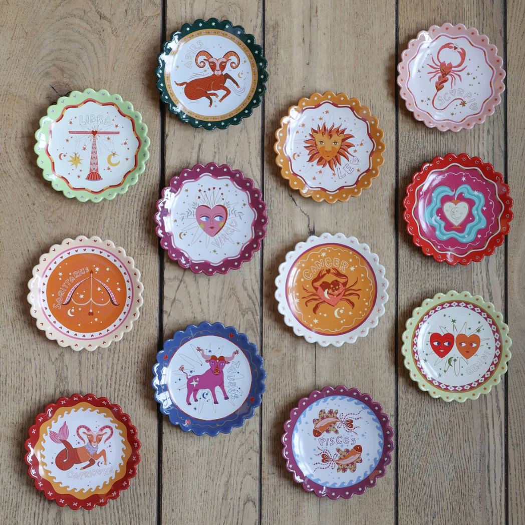 Het Sterrenbeeld bord Waterman van All the Luck in the World is een keramieken merkproduct uitgevoerd in rood en paars. Met een diameter van 14,5 cm is dit bord zowel decoratief als stijlvol. Het unieke design maakt het een opvallend accessoire voor in huis of als bijzonder cadeau.