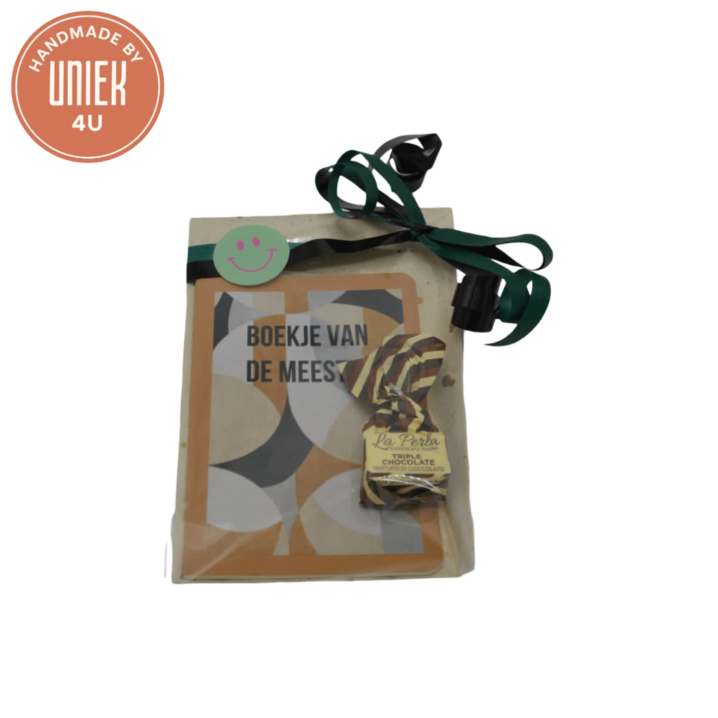 Het Boekje van de meester is een stijlvol notitieboekje in warme aardetinten. Speciaal ontworpen voor meesters om ideeën, aantekeningen of herinneringen in op te schrijven. Het compacte formaat maakt het makkelijk mee te nemen in tas of jas. Een persoonlijk en praktisch cadeau bij het afscheid op school. Perfect als bedankje met een blijvende waarde.