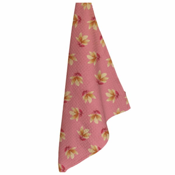 De keukendoek Golden Petals van Bubble & Blend is uitgevoerd in een print van roze met gele bladeren en gemaakt van gerecyclede materialen. Met een rechthoekige vorm en afmetingen van 70 x 50 cm is deze doek zowel praktisch als stijlvol. Als merkproduct combineert het duurzaamheid met een vrolijk en modern design voor in de keuken.