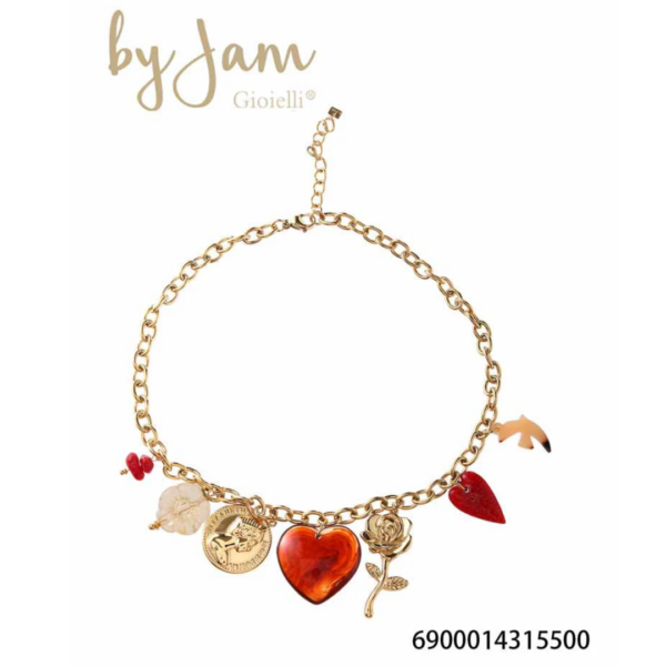 By Jam Gioielli – Bedelarmband hart en roos – Multicolor