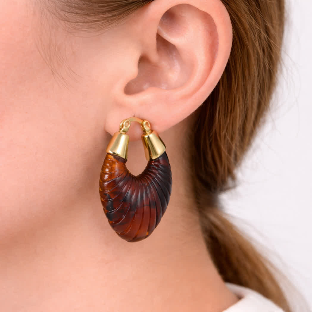 Stijlvolle oorbellen van By Jam Gioielli in een warme goud-bruine tint. De schelpvorm geeft ze een zomerse en elegante uitstraling. Gemaakt van roestvrij staal en daardoor hypoallergeen en comfortabel om te dragen. Met een subtiele afmeting van 3 x 2 cm zijn ze perfect voor elke dag of als verfijnde finishing touch bij je outfit.