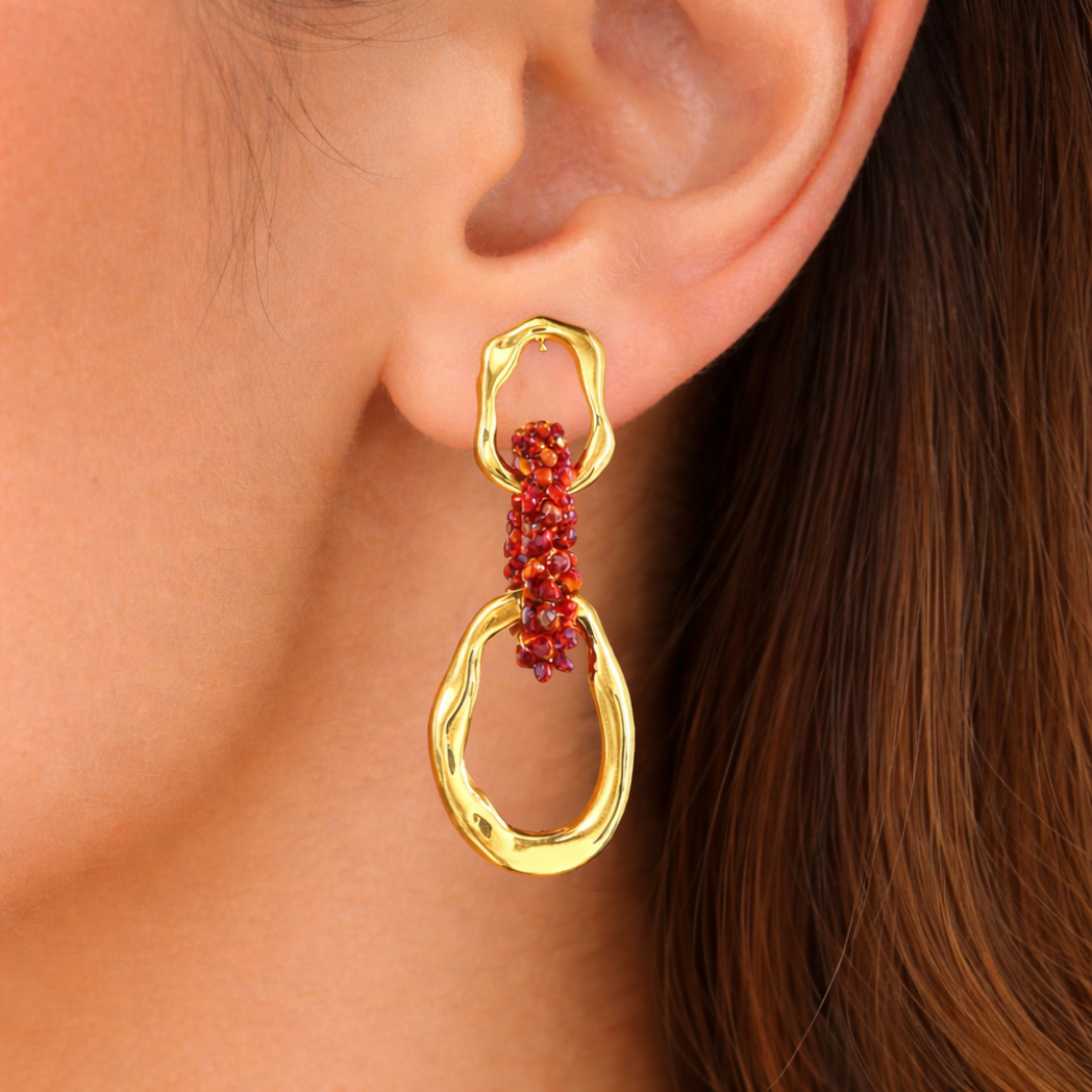 By Jam Giolellie – Oorbellen – Schakels met Rode kralen