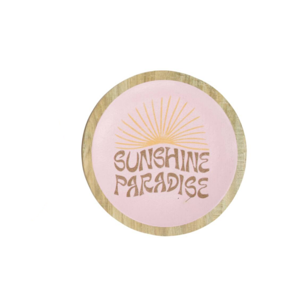 Dit ronde bordje van Dijk Natural Collections is een decoratief bordje, gemaakt van polyhars met een afmeting van 14,5 x 14,5 x 1,3 cm. Dit merkproduct is uitgevoerd in een multicolor ontwerp en voorzien van de tekst “Sunshine paradise”. De ronde vorm en het compacte formaat maken het geschikt als decoratief accent. Een vrolijk en kleurrijk item met een zomerse uitstraling.