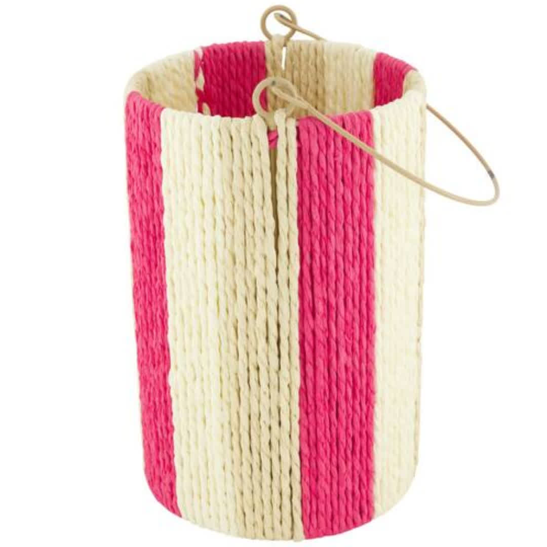 De hoge touwlantaarn met hengsel van Dijk is een ronde lantaarn in roze en wit, gemaakt van touw en metaal. Met een afmeting van 22 x 14 cm heeft deze lantaarn een hoger model dat zorgt voor een opvallende en sfeervolle uitstraling. Het touw in combinatie met het metalen frame en het hengsel geeft de lantaarn een speelse en natuurlijke look. Ideaal als sfeerverlichting voor binnen of buiten op tafel, een plank of in de tuin.