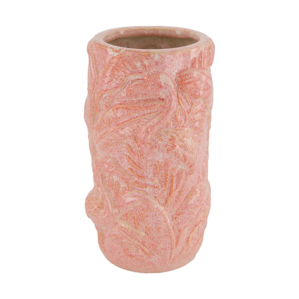 Deze opvallende keramische vaas van Dijk is uitgevoerd in een vrolijke roze kleur met een speels flamingomotief. Een echte blikvanger in je interieur, perfect voor bloemen of als decoratief item op zichzelf. Het unieke design geeft een zomerse en frisse uitstraling aan elke ruimte.