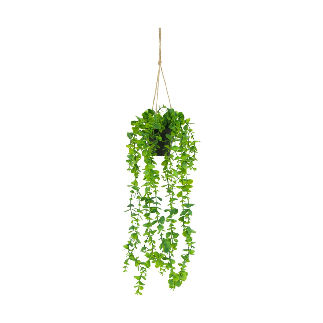 De Dijk PE eucalyptusplant met hanger is een decoratieve kunstplant gemaakt van plastic. Met een afmeting van 15 x 15 x 70 cm heeft deze eucalyptusplant een lang hangend model dat zorgt voor een natuurlijke en sfeervolle uitstraling. Dankzij het kunststof materiaal blijft de plant mooi zonder onderhoud. Ideaal als hangdecoratie voor in huis of op het balkon.