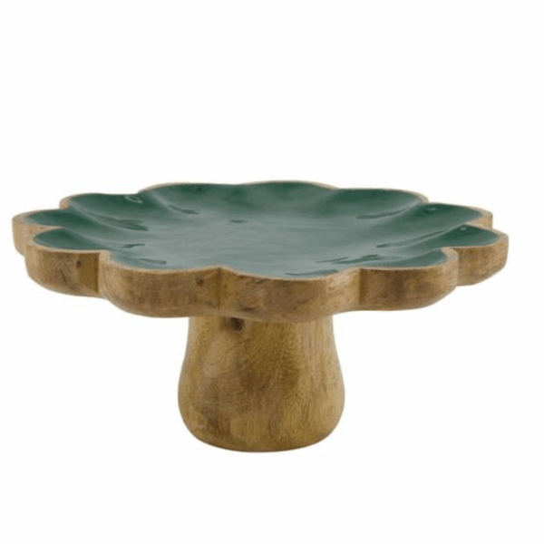 Deze stijlvolle taartstandaard van Dijk is gemaakt van stevig mangohout en heeft een speelse bloemvorm. De naturel- en groentinten geven jouw tafel direct een frisse en natuurlijke look. Met een afmeting van 28 x 28 x 12,5 cm is hij perfect voor taart, gebak of decoratie. Een echte blikvanger voor elke gelegenheid.