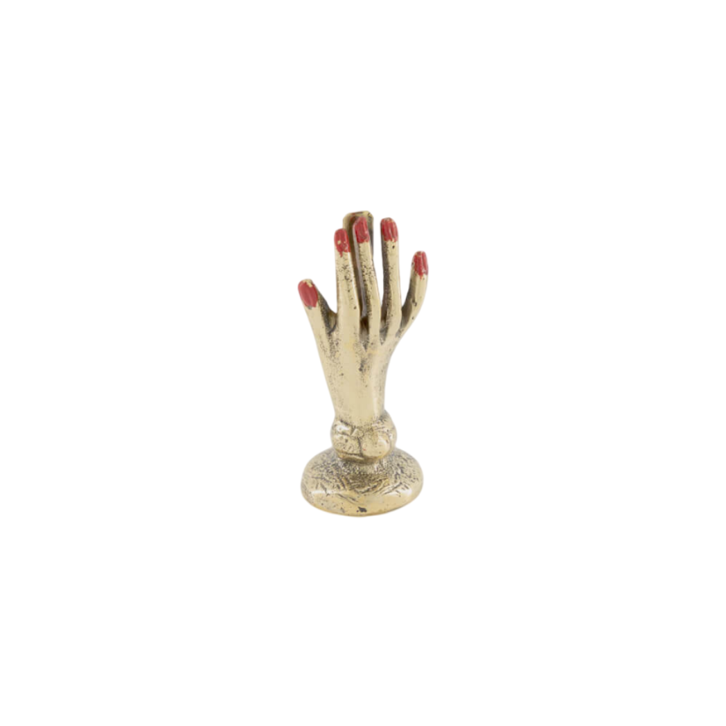 De kaarthouder Hand van Doing Goods is uitgevoerd in goud en heeft de vorm van een elegant gestileerde hand. Deze stijlvolle houder is perfect om kaarten, foto’s of kleine notities op een bijzondere manier te presenteren.
