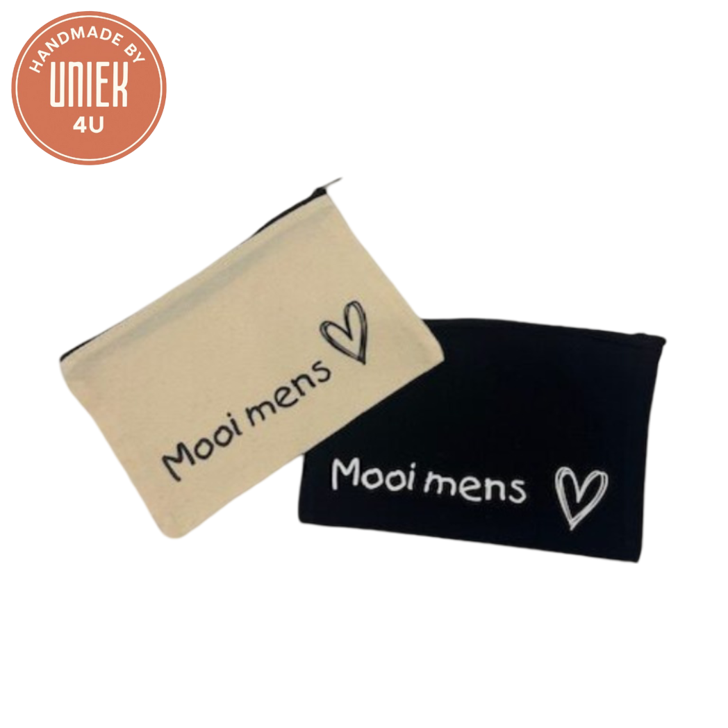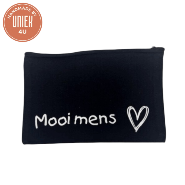 Deze zwarte etui van Uniek is zowel praktisch als stijlvol. Versierd met een lief hartjespatroon en de inspirerende tekst “Mooi Mens”, is hij perfect om pennen, make-up, kleine accessoires of andere persoonlijke spulletjes georganiseerd te houden. Het compacte formaat maakt de etui ideaal om mee te nemen in je tas, rugzak of koffer. Een mooie combinatie van functionaliteit en een positieve boodschap die je elke dag een glimlach bezorgt.