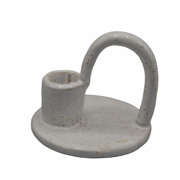 De Gusta dinerkaarshouder met handvat in wit is gemaakt van stevig keramiek met glazuur en heeft een klassieke ronde vorm. Met een afmeting van 10 x 7,5 cm is hij ideaal voor sfeervolle dineravonden of als decoratief accent in huis. Het handvat maakt verplaatsen eenvoudig en veilig.