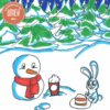 Handgemaakte kaart – Sneeuwpop met een Konijn