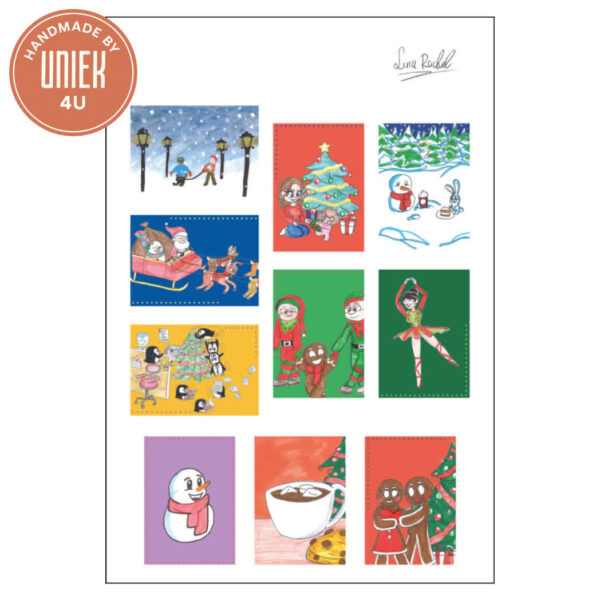 Breng extra warmte in de feestdagen met deze set van 10 handgemaakte kerstkaarten. Elke kaart (10,5 x 15 cm) is uniek ontworpen door Luna en voorzien van vrolijke, kleurrijke illustraties. Gemaakt van stevig papier en rechthoekig van vorm, zijn ze perfect om je kerstgroet een persoonlijke en creatieve touch te geven. Een prachtige set om uit te delen of cadeau te doen tijdens de feestdagen.