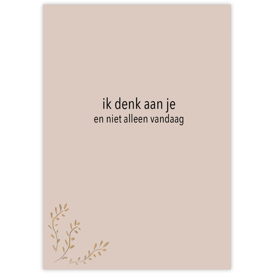 Hartgedichtje – wenskaart met envelop – ik denk aan je, en niet alleen vandaag – bruin