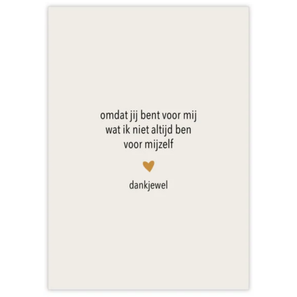 Hartgedichtje – wenskaart met envelop – Omdat jij bent voor mij wat ik niet altijd ben voor mijzelf, bedankt – beige