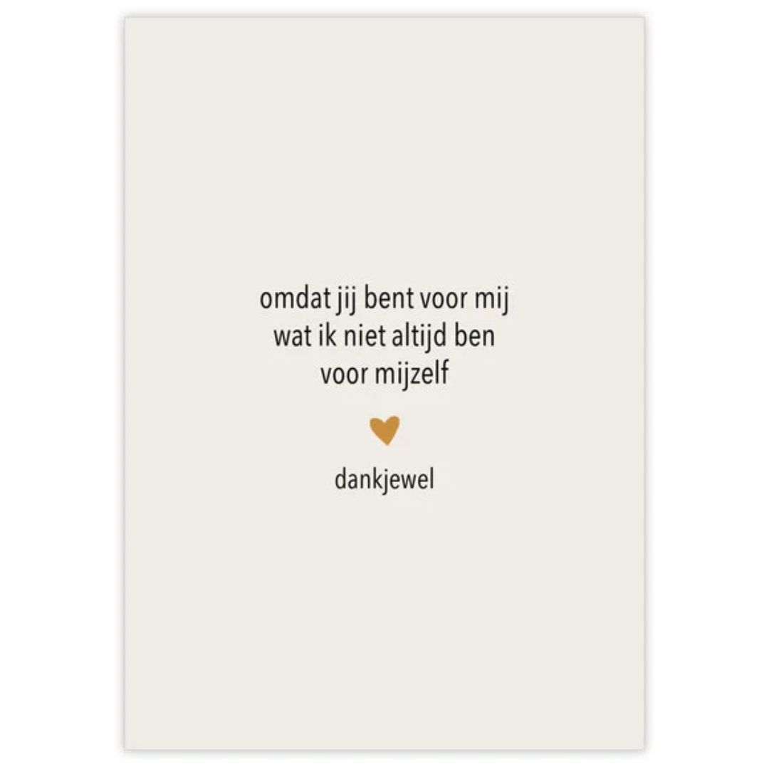 Hartgedichtje – wenskaart met envelop – Omdat jij bent voor mij wat ik niet altijd ben voor mijzelf, bedankt – beige