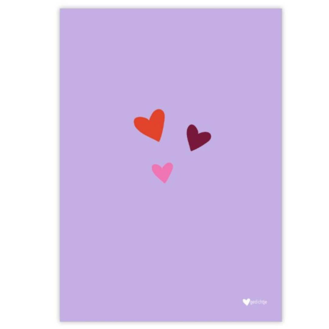 Hartgedichtje – wenskaart met envelop – paars, multicolor