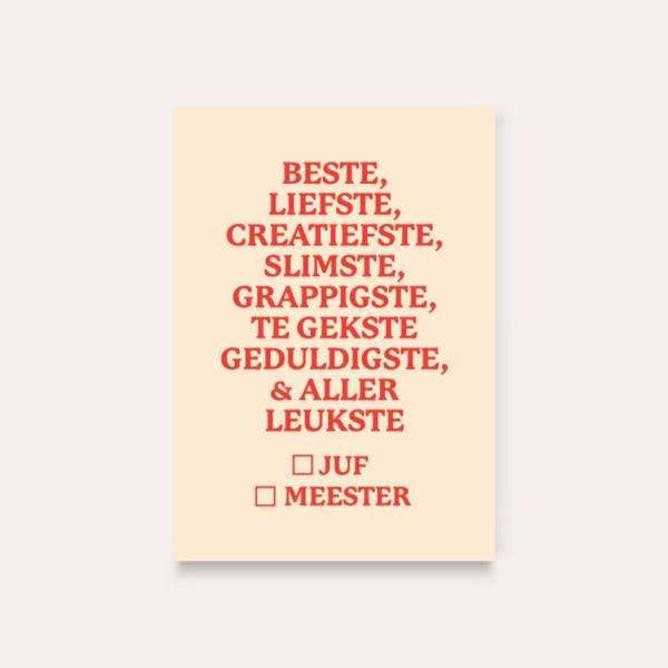 Heyday – A6 kaart – Beste, liefste, Creatiefste, Slimste, Grappigste, Te Gekste, Geduldigste & Allerleukste Juf/Meester – Beige