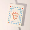 Deze schattige A6-kaart van Heyday is klein, maar zegt veel. Op de witte achtergrond staat de rode tekst “Klein, maar fijn”, versierd met blauwe en rode hartjes. De kaart is rechthoekig en meet 15 x 10,5 cm, gemaakt van stevig papier. Perfect voor een lief gebaar of een kleine felicitatie. Een kaartje met een groot hart!