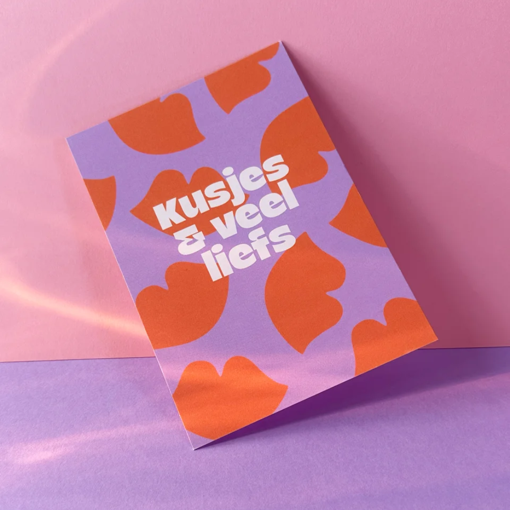 Heyday – A6 kaart – Kusjes & Veel Liefs – Paars met Rood