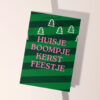 De Heyday Wenskaart Huisje boompje kerstfeestje is uitgevoerd in Groen gestreept papier met Witte kerstboompjes en Roze tekst. Met een rechthoekige vorm is deze kaart ideaal om je kerstgroeten op een vrolijke en stijlvolle manier te versturen. Het speelse en feestelijke ontwerp maakt deze kaart perfect voor de feestdagen.