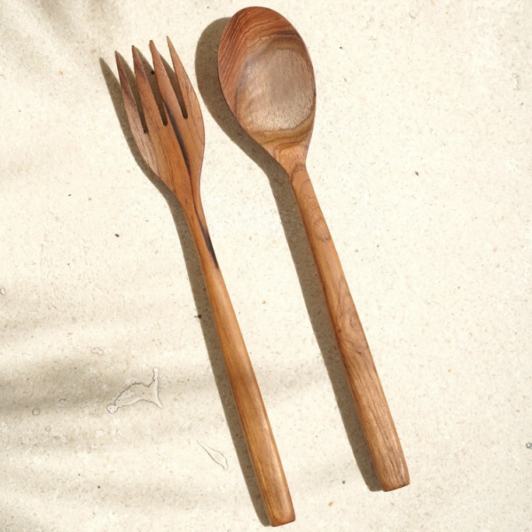 Deze houten vork van Hippie Monkey is gemaakt van teakhout en heeft een natuurlijke kleur. Met een afmeting van 21 x 3 cm ligt hij prettig in de hand en is hij ideaal voor dagelijks gebruik. Het stevige materiaal en het stijlvolle ontwerp voegen een warme, natuurlijke uitstraling toe aan elke tafelsetting.