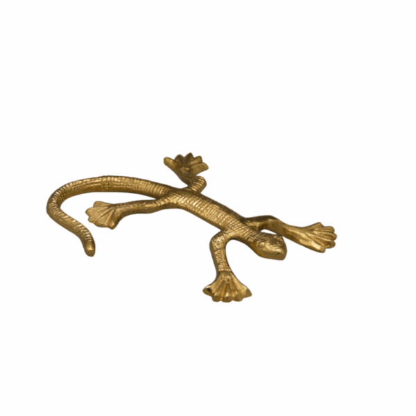 Dit gouden salamanderbeeld van Housevitamin is een echte blikvanger voor in huis. Het moderne design en de glanzende afwerking geven elk interieur een luxe uitstraling. Perfect om op een kast, plank of bijzettafel te plaatsen als stijlvol detail.