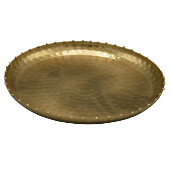 Het goudkleurige bordje van Housevitamin is gemaakt van stevig metaal en heeft een elegante ronde vorm. Met een afmeting van 15,5 x 15,5 cm is dit bordje ideaal als sierbord, onderzetter of decoratief accent in huis. Voeg een vleugje luxe en stijl toe aan je interieur.