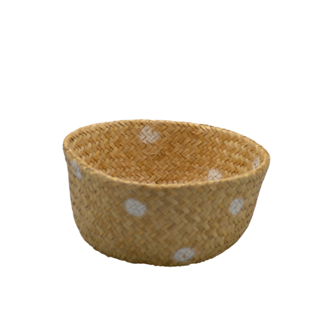 Housevitamin – rieten mandje – naturel witte stippen