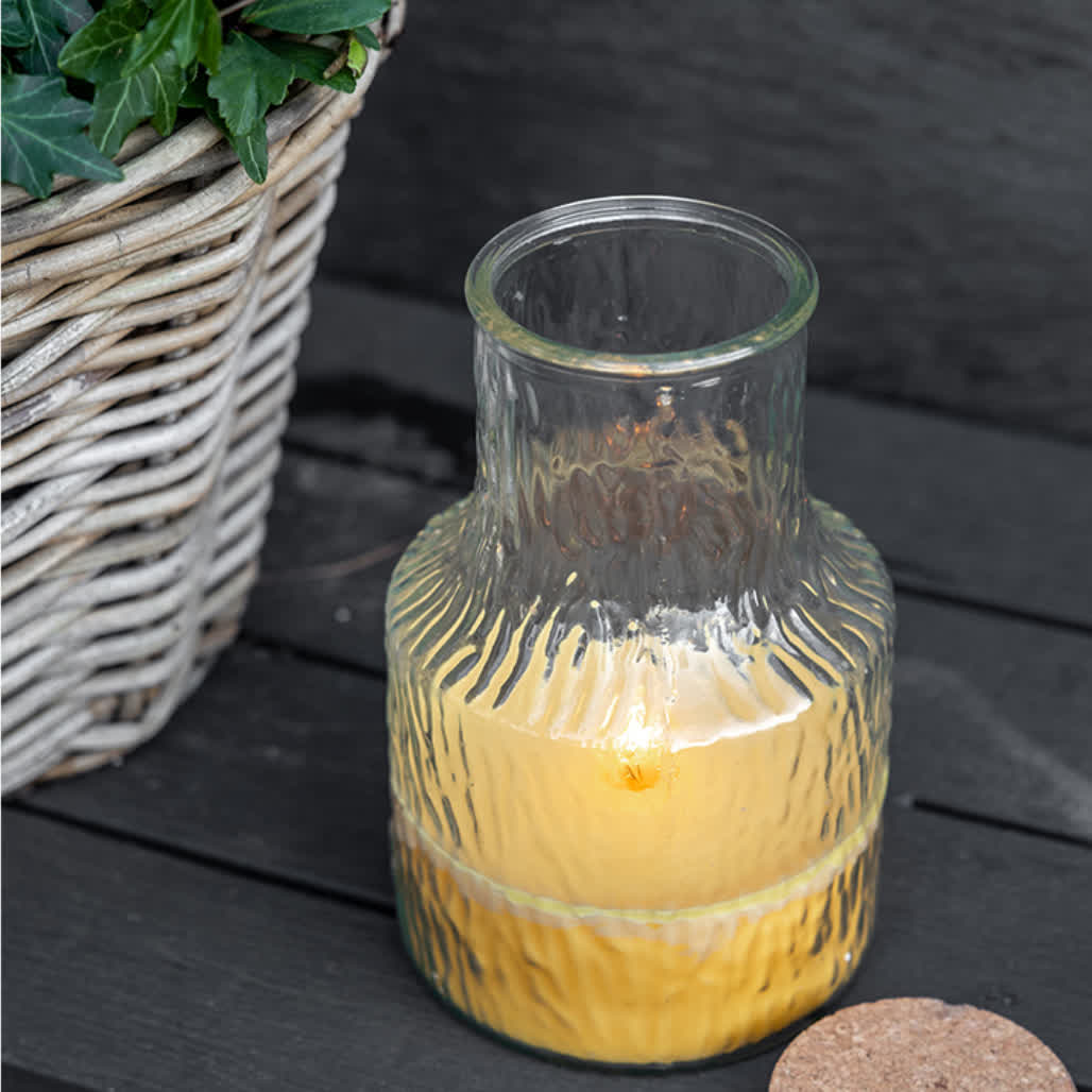Een unieke sfeermaker voor je huis of tuin: de Jens Living Candle Vase. Deze elegant vormgegeven cilinder van glas wordt geleverd met een kurken deksel en is verkrijgbaar in een stijlvolle witte variant en een fris gele optie met citronella. Met een indrukwekkende brandtijd van 60 uur en een afmeting van 22 cm hoog en 42 cm omtrek, combineert dit merkproduct stijl met functionaliteit. Kies de neutrale variant voor binnen of de citronella-uitvoering om ongestoord van je avonden buiten te genieten.