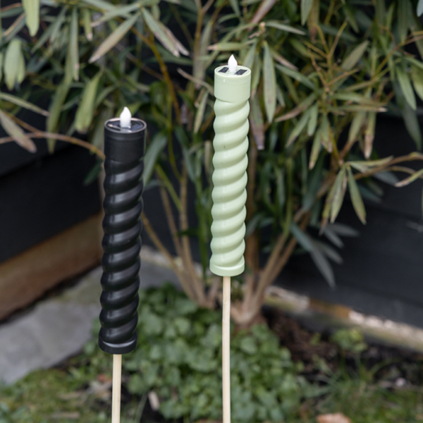 De Jens Living kunstfakkel groen is 58 cm lang en werkt op zonne-energie, waardoor je eenvoudig een sfeervolle en duurzame verlichting creëert. Het groene design geeft een natuurlijke uitstraling, perfect voor in de tuin of op het terras. Een stijlvolle en milieuvriendelijke decoratie voor buiten.