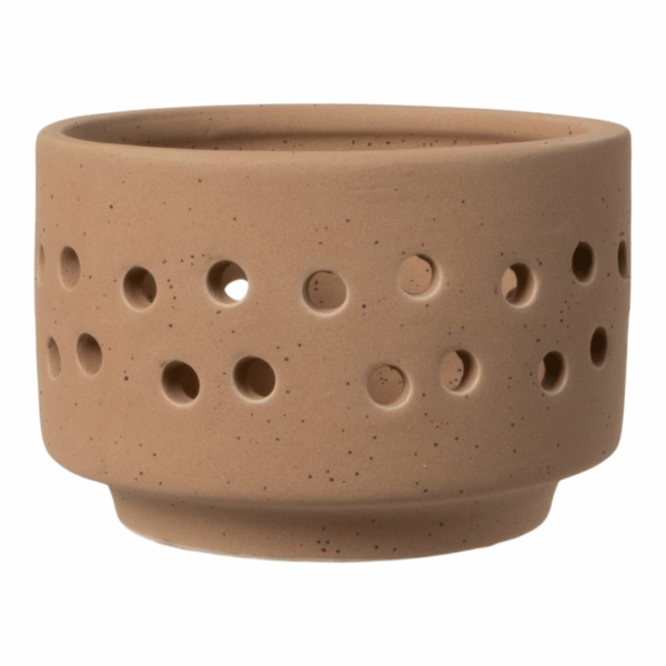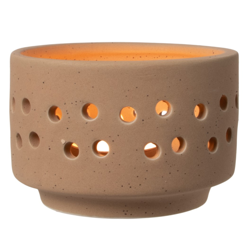 Deze grote theelichthouder Siena van Jens Living is gemaakt van porselein en heeft een ronde vorm in een zachte beige kleur. Met een afmeting van 9,3 x 6 cm is hij ideaal voor het sfeervol plaatsen van theelichtjes. Het elegante ontwerp voegt een warme en stijlvolle uitstraling toe aan elk interieur.