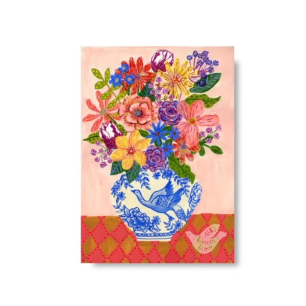 De Kirsten Blom ansichtkaart ‘Weelderige bos met bloemen’ is een rechthoekige ansichtkaart in multicolor, gemaakt van papier. De kaart heeft een A6-afmeting en is voorzien van een kleurrijke afbeelding van een vaas met een weelderige bos bloemen. Het papieren materiaal zorgt voor een stevige en kwalitatieve kaart. Ideaal om te versturen, te verzamelen of als kleine decoratie.