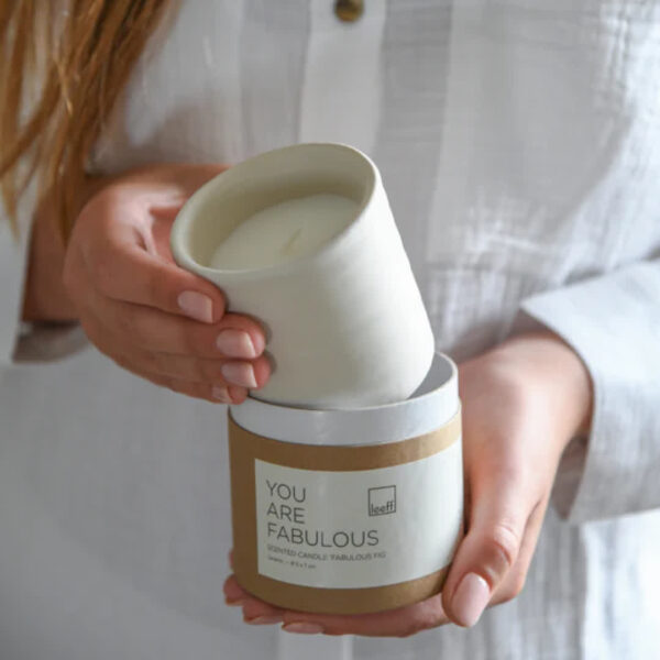 Deze Leeff geurkaars Fabulous Fig in naturel is perfect om een warme, fruitige sfeer in huis te creëren. Met de tekst “You are Fabulous” is het ook een ideaal cadeautje voor een speciaal iemand. De kaars verspreidt een heerlijke vijgengeur en past mooi in elk interieur. Materiaal keramiek in een leuk doosje afmeting 5 x 7 cm en ongeveer 25 branduren