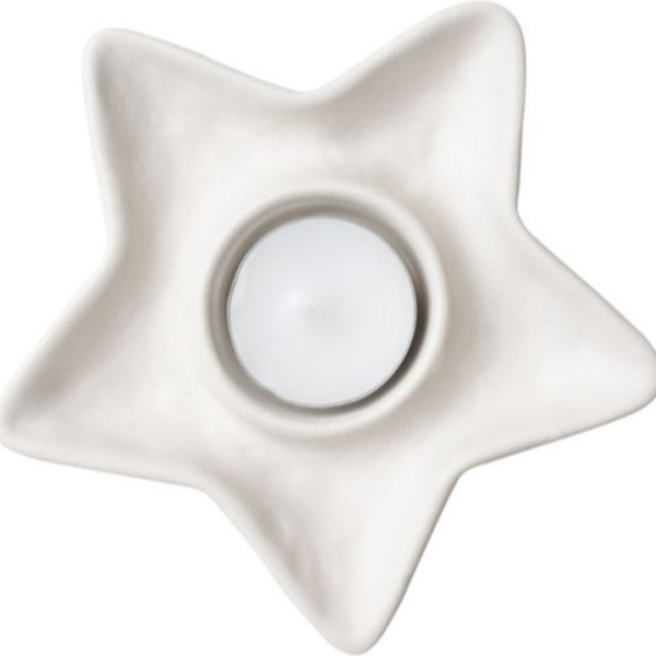 Deze sfeervolle waxinelichthouder van LEEFF is gemaakt van wit porselein en heeft de vorm van een ster. Het zachte materiaal en het tijdloze ontwerp zorgen voor een warme, rustige uitstraling wanneer het kaarsje brandt. Met een diameter van 13,5 cm en een hoogte van 3,8 cm is het een mooi decoratief item voor op tafel, een kast of vensterbank. Perfect voor een gezellige sfeer in huis, vooral tijdens de wintermaanden.
