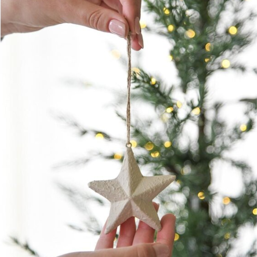 LEEFF – Kerstster Hanger – Papier Maché – Wit/Zandkleurig