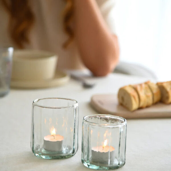 Deze elegante theelichthouder van LEEFF is gemaakt van transparant glas en heeft een klassieke ronde vorm. Met een formaat van 8 × 10 cm is hij ideaal voor op tafel, een plank of vensterbank en zorgt hij voor een sfeervolle, warme gloed wanneer er een kaarsje in brandt. Een stijlvol en tijdloos accessoire dat in elk interieur past.