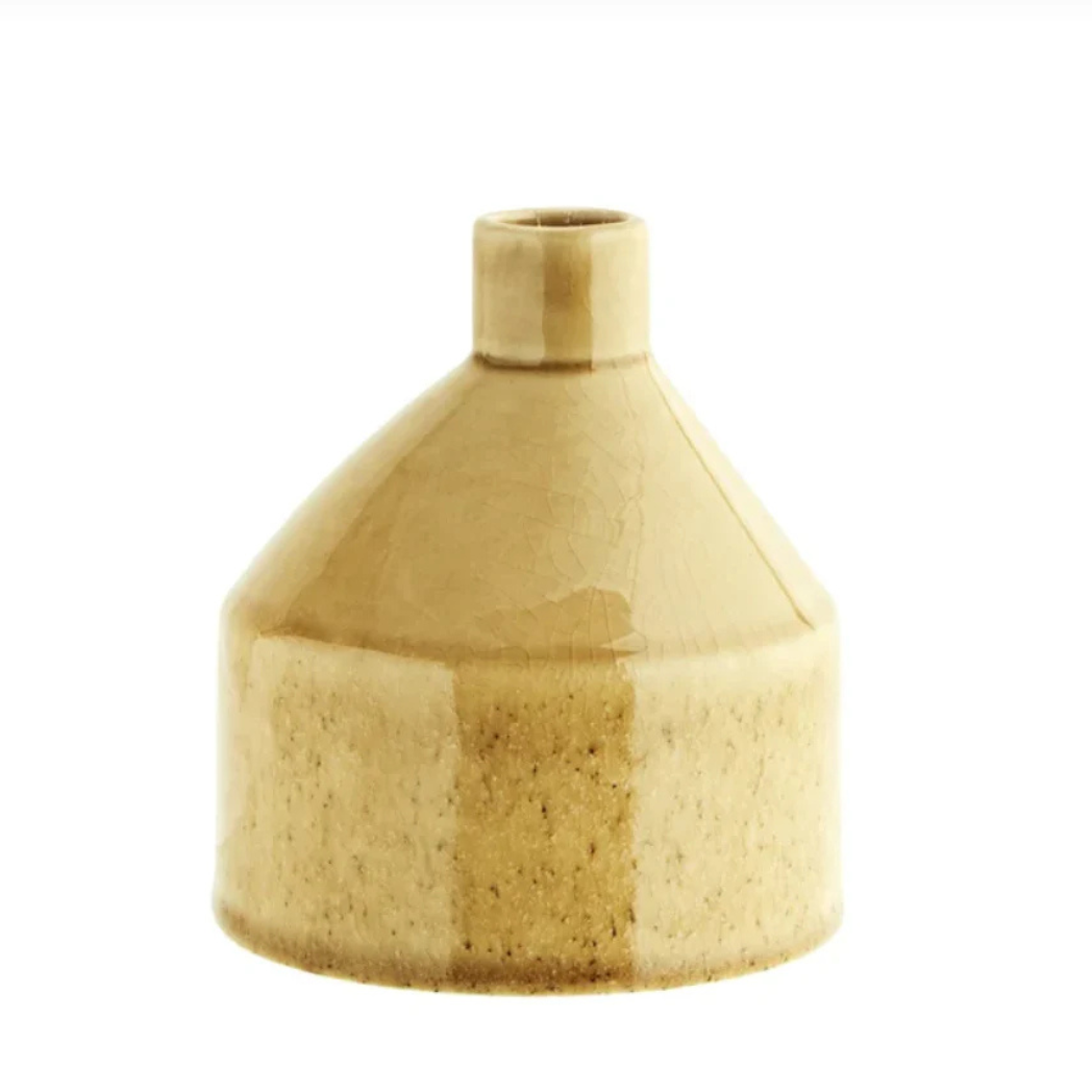 De Madam Stoltz vaas in okergeel is een charmante toevoeging aan je interieur. Gemaakt van hoogwaardig aardewerk, met een ronde, flesvormige uitstraling. Met een diameter van 11 cm en een hoogte van 12 cm is deze kleine vaas ideaal voor één bloem of een klein boeketje. Een stijlvol merkproduct dat warmte en kleur brengt in elke ruimte.