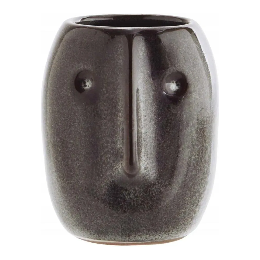 Dit Madam Stoltz vaasje met gezichtje heeft een uniek en artistiek ontwerp dat direct opvalt. Het antracietkleurige keramiek geeft het een moderne en sfeervolle uitstraling. Met een afmeting van 10 x 6,5 cm is het perfect voor kleine bloemen of als decoratief accent op een plank of tafel. Een bijzondere toevoeging aan je interieur. Shop nu.