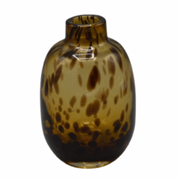 Dit vaasje van Madam Stoltz is gemaakt van glas en heeft een elegante, ovale vorm met subtiele zwarte accenten. Met een afmeting van 14 x 8,5 cm is het perfect voor het stijlvol presenteren van bloemen of als decoratief item. De bruine kleur in combinatie met de donkere details geeft het vaasje een warme en moderne uitstraling.
